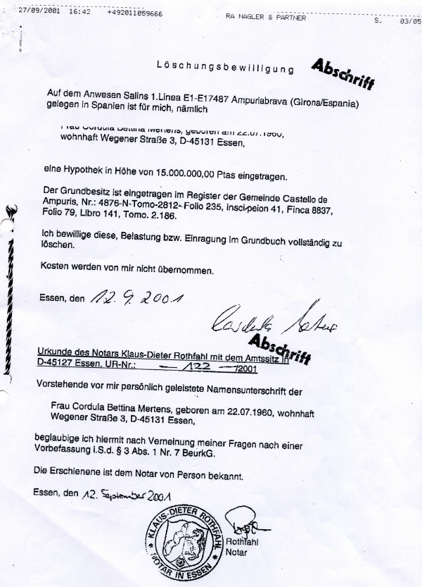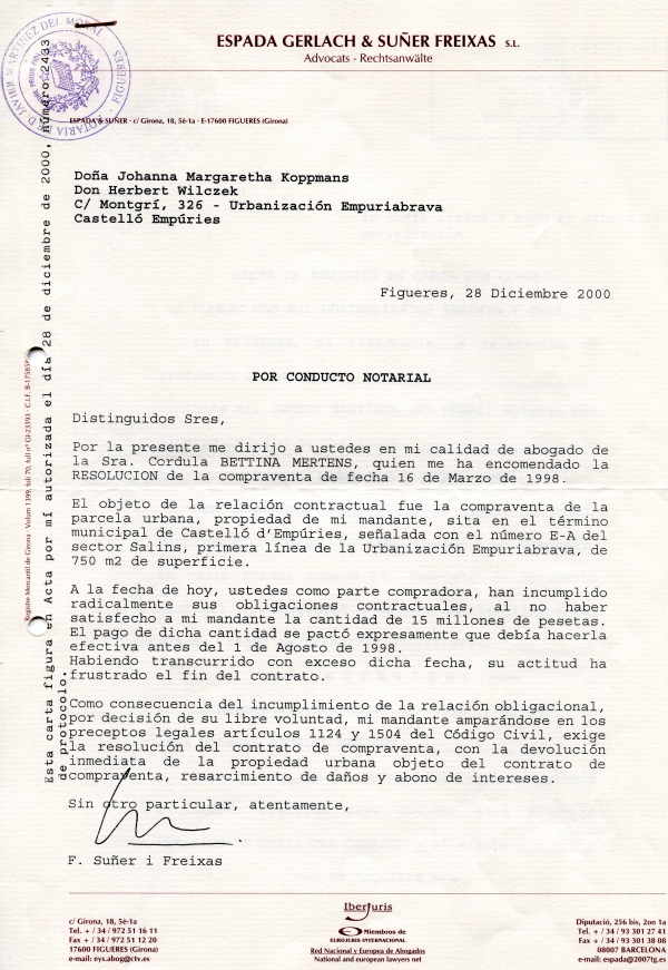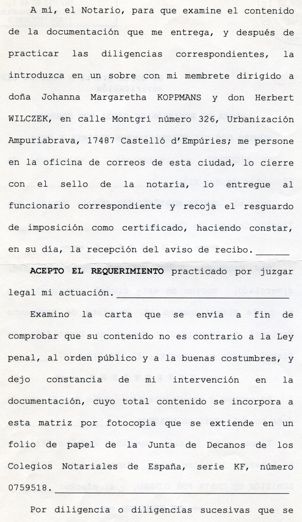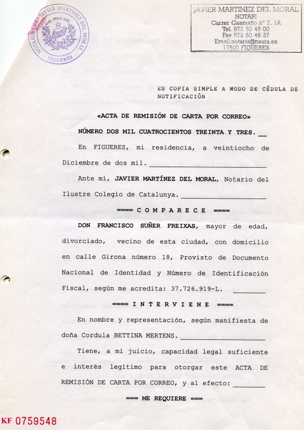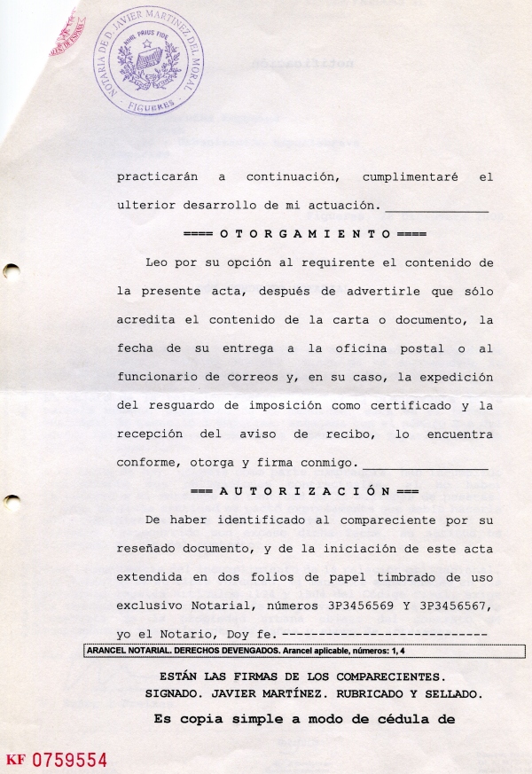 Carta de Hacienda de Girona, que indica que todo es mentira y un documento Notarial de pago y compraventa no les vale ni lo ven relevante como prueba.